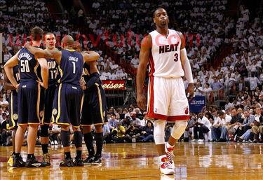 勒布朗得到26分和7次助攻,韦德得到23分,阿伦在第四节爆发贡献13分,他们率队成功逆转最多15分落后,迈阿密热火队在东部决赛第三战主场以99-87击败印第安纳步行者队。